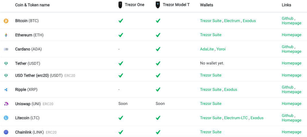 One of the key differences beteween the Trezor One and the Trezor Model T is that the Trezor One doesn’t support Cardano. If you are looking to HODL Cardano then you will need to fork out for the Model T at this exact moment in time. Interestingly, Uniswap will be coming to both the Trezor One and the Trezor Model T “Soon” according to the Trezor website.