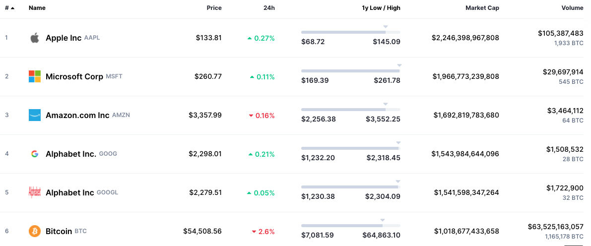 Bitcoin’s Market Cap in 2021 is approaching the market cap of companies like Google, Amazon & Apple. This is incredible growth for a digital asset that is only 12 years old. This is one of the reasons that investors have come to term Bitcoin as “Digital Gold”. Gold’s Market Capitalisation of $11 Trillion, it seems likely that one day Bitcoin will surpass this as it is a portable, secure digital asset with a limited supply.